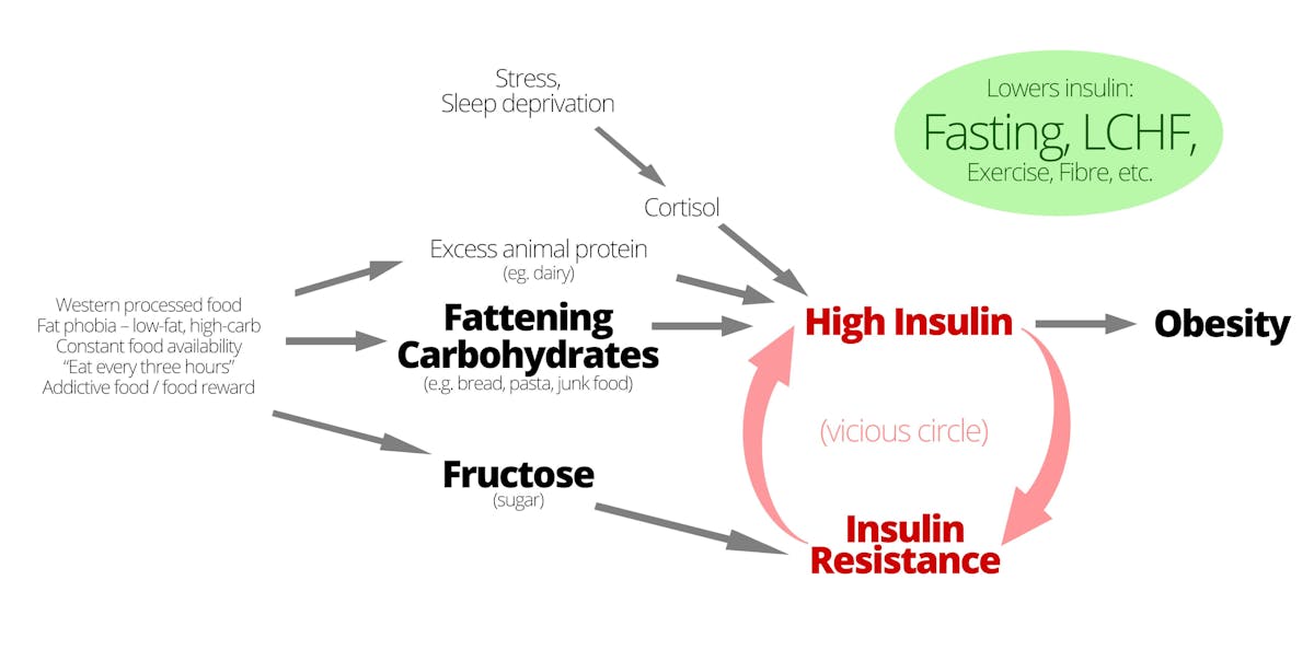 This inspired me to update Dr. Fung’s graph. Here’s the updated way I think about the fundamental role of insulin in obesity these days: