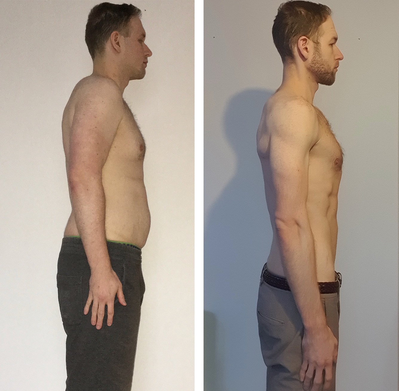 Bilden till vänster är tagen ett år efter att Christian börjat med LCHF och redan gått ner 25 kilo.