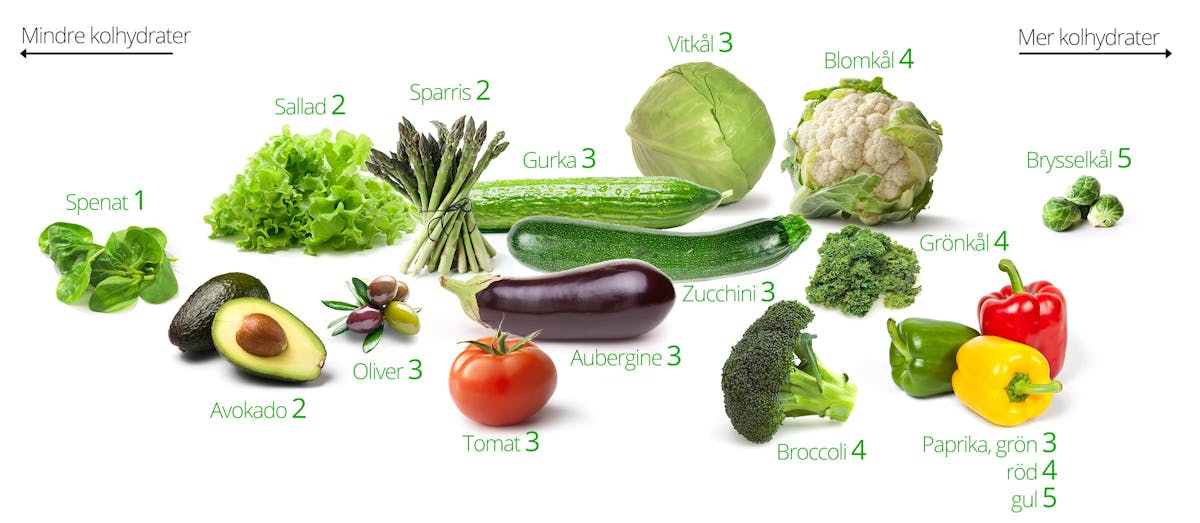 GuideVilka grönsaker är bra? Det finns en enkel tumregel: Grönsaker som växer ovan jord har lågt kolhydratinnehåll och kan i princip ätas fritt.